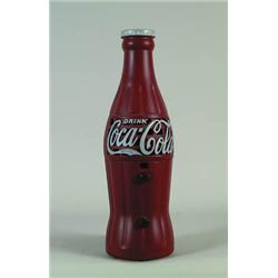 Lot # 466 COCA-COLA BOTTLE RADIO. Nice original figural radio circa 1933 with cord antenna and inner workings visible from underside. SIZE: 24" t. CONDITION: Overall very good to near excellent. Silver lettering on front has been touched up. Knobs are possible replacements. Dial has few etchings marking a prior owner's favorite stations. Radio lights up, but we were unable to get a station. 1-28433 (5,000-7,000)