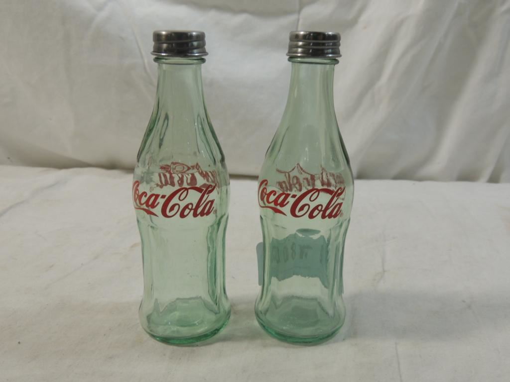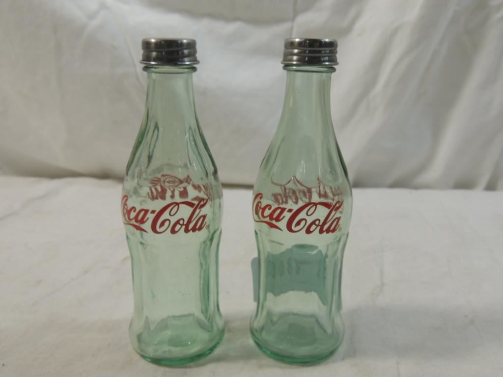 DECORATIVE COCA COLA BOTTLE SAT & PEPPER SHAKERS, COLLECTIBLE SHAKERS, COCA COLA MEMORAIBILA AS SHOWN SEE PHOTO FOR MORE DETAILS.