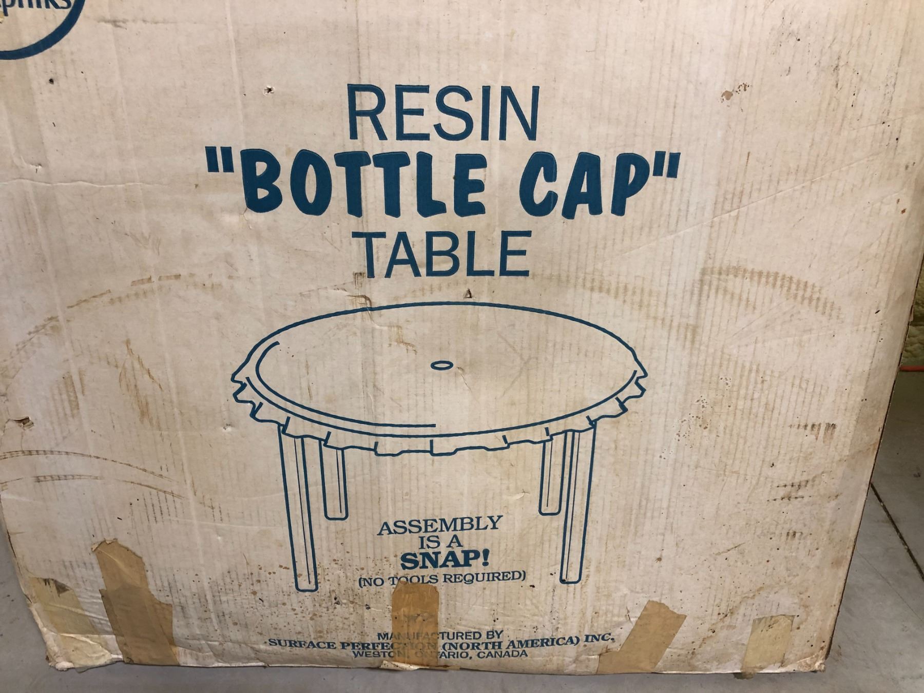 COCA-COLA BOTTLE TOP TABLE WITH MATCHING UMBRELLA - AS NEW