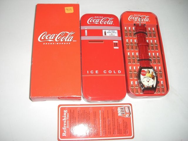 COCA-COLA COLLECTORS WATCH IN ORIGINAL BOX/NEW CONDITION-BOOK VALUE $50.00+!! WATCH CAME OUT OF SAFE BOX!! ***Coin, Currency & All Items Listed in this auction - Grades, Conditions and Values are not Safe Deposit Coins LLC Responsibilty. Grades, Condition and Values are determined by Consigner(s) & Buyers ONLY