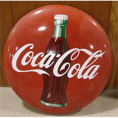 1950S-1960S COCA-COLA TIN DISC SIGN. Shows some minor scuffing. Good condition. 36.” Dia.