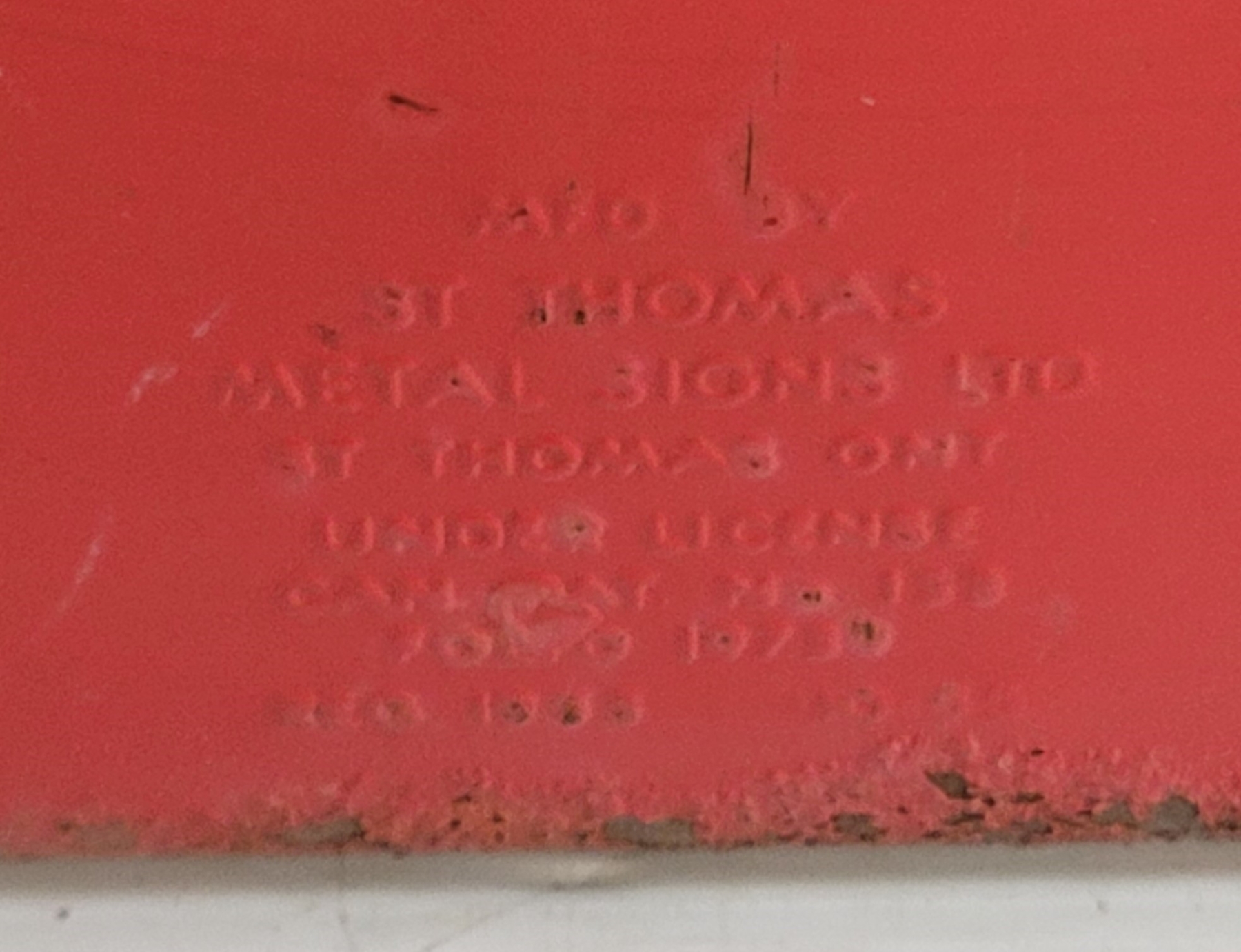 NOTE: 13 X 16 X 17IN - SIGNS OF WEAR - ST. THOMAS METAL SIGNS LTD. - MISSING PC - SEE PICS
