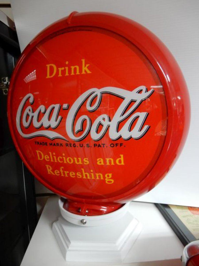 COCA-COLA PLASTIC LIGHT UP GLOBE WITH BASE - COPY FROM 1940 ADVERTISING - 13 1/2" LOCATION: SODA SHOP