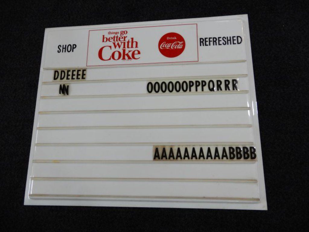 COCA-COLA PLASTIC MENU BOARD 34 3/4" X 29 3/4" - SOME LETTERS- GOOD CONDITION LOCATION: UPPER BACKROOM