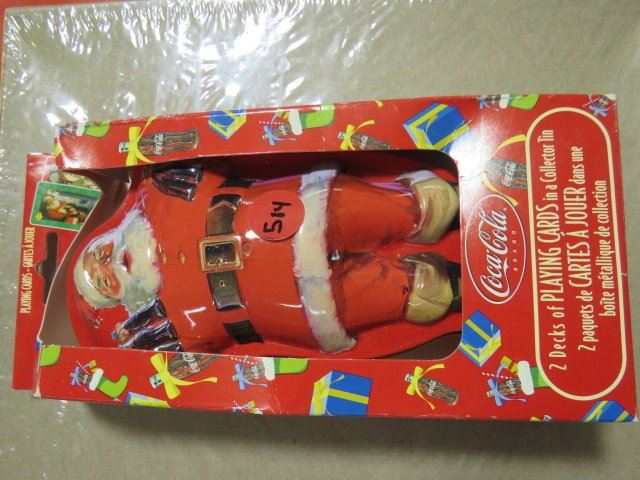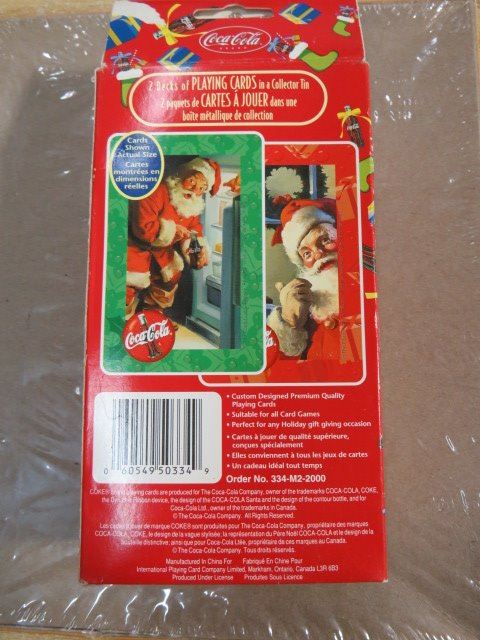 COCA COLA SANTA TIN W/2 DECKS PLAY CARDS *IN ORIGINAL BOX*