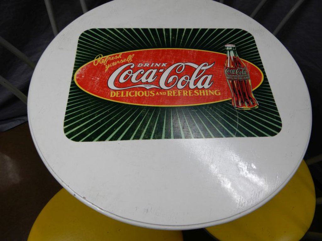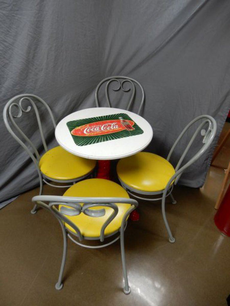 COCA- COLA SODA PARLOUR TABLE & 4 CHAIRS 4 PADDED CHAIRS LOCATION: SODA SHOP