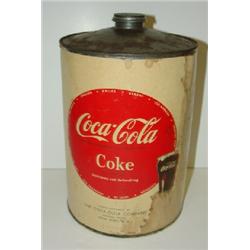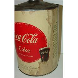 COCA-COLA SYRUP CONTAINER. Original paper label. Label shows signs of water damage. Original cap. Containers shows signs of pitting. 10” H