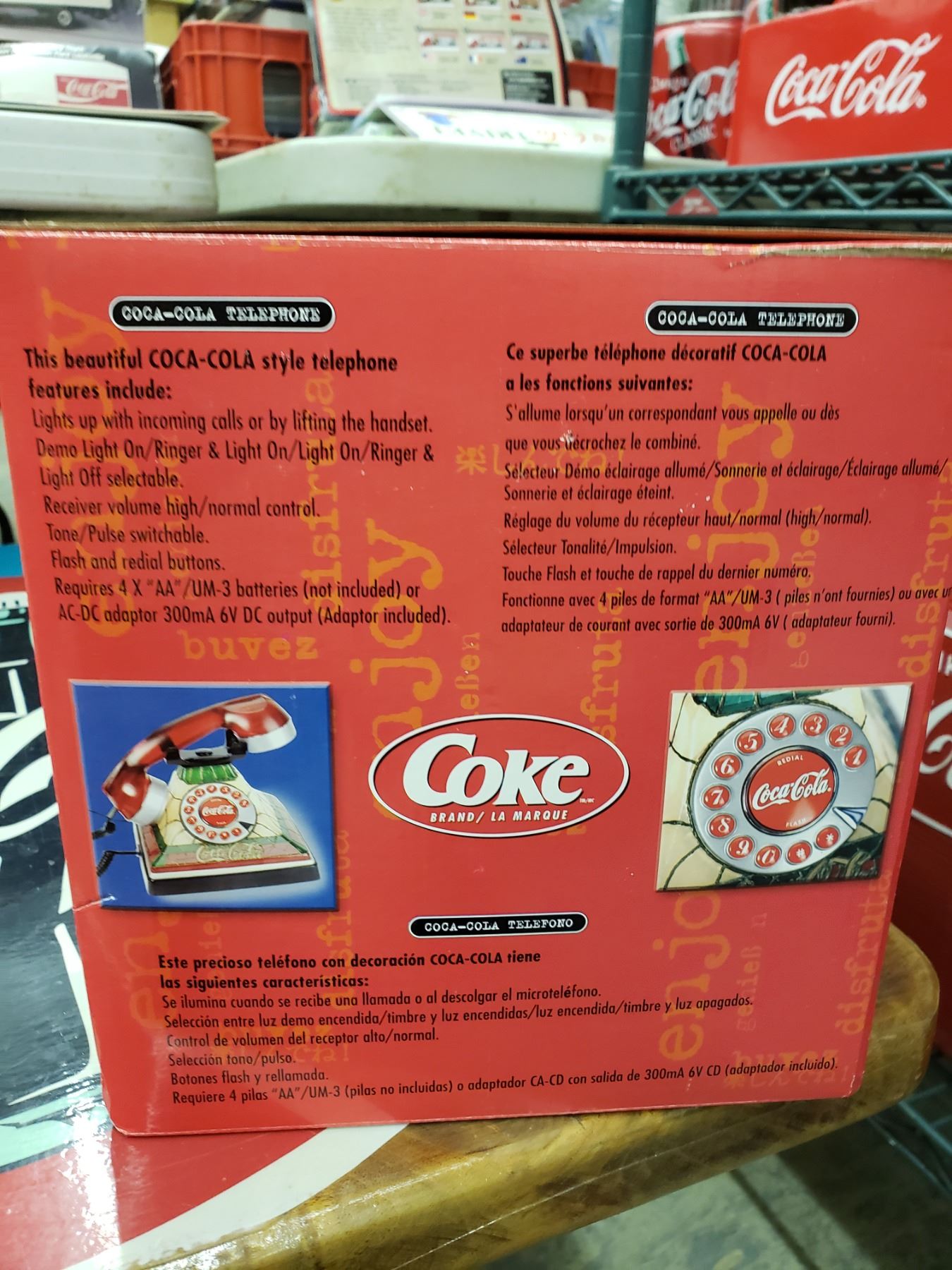 COCA COLA TELEPHONE . LIGHTS UP WITH CALL AND IS IN ORIGINAL PACKAGING
