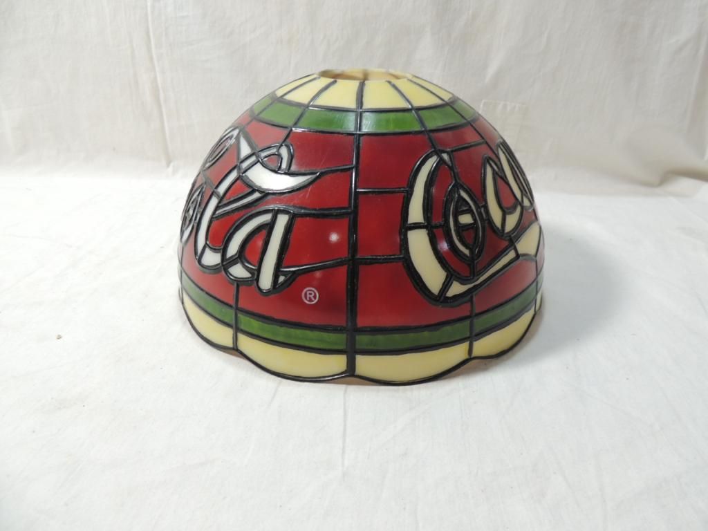 COCA COLA VINTAGE STYLE LAMP SHADE PLASTIC LAMP SHADE. STAID GLASS STYLE. AS SHOWN. SEE PHOTO FOR MORE DETAILS.
