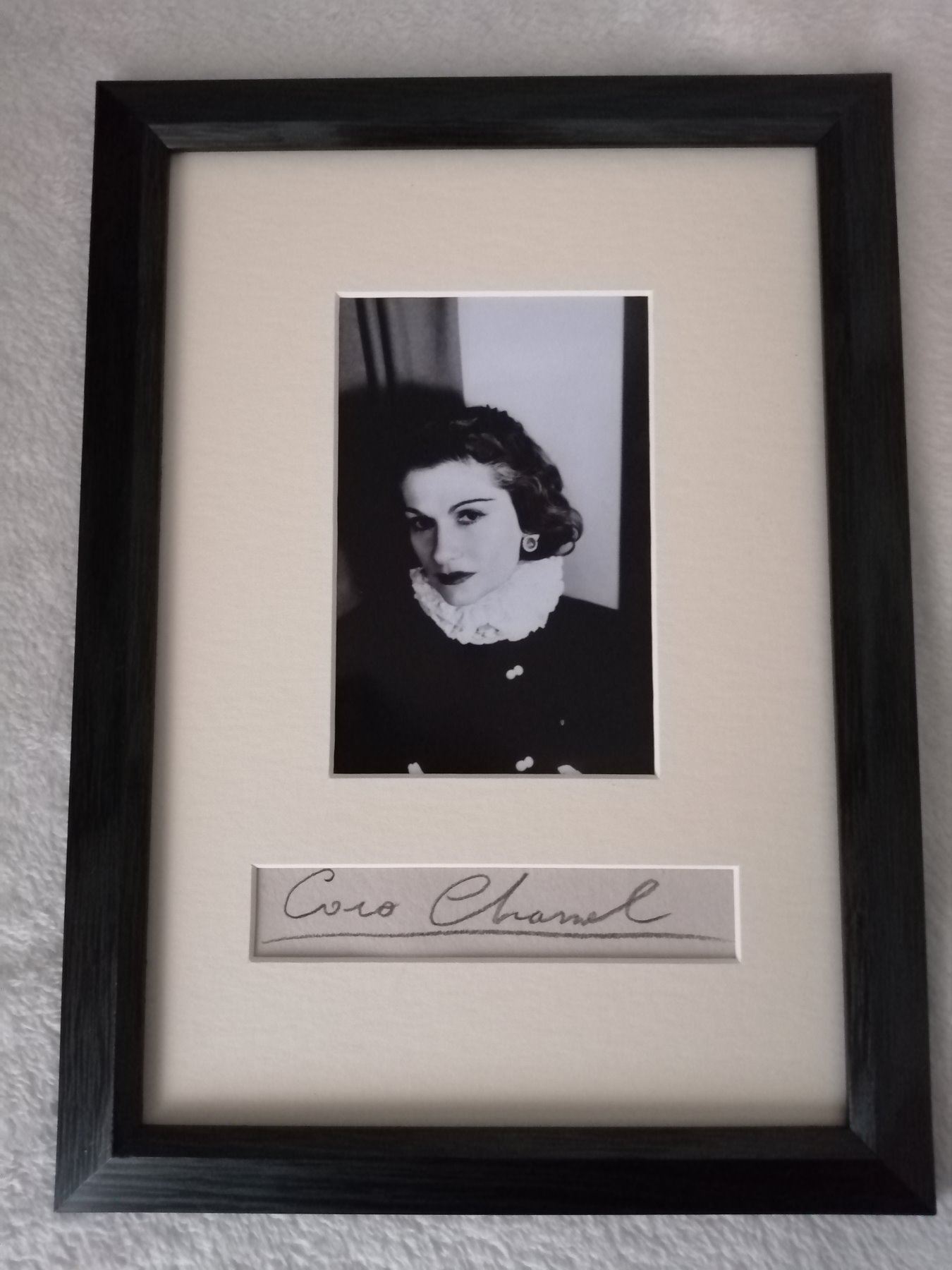 Coco Chanel's autograph is mounted, framed and supplied with coa.