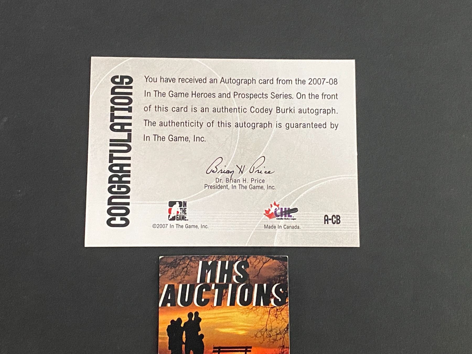 CODEY BURKI 2007 IN THE GAME AUTOGRAPH CARD
