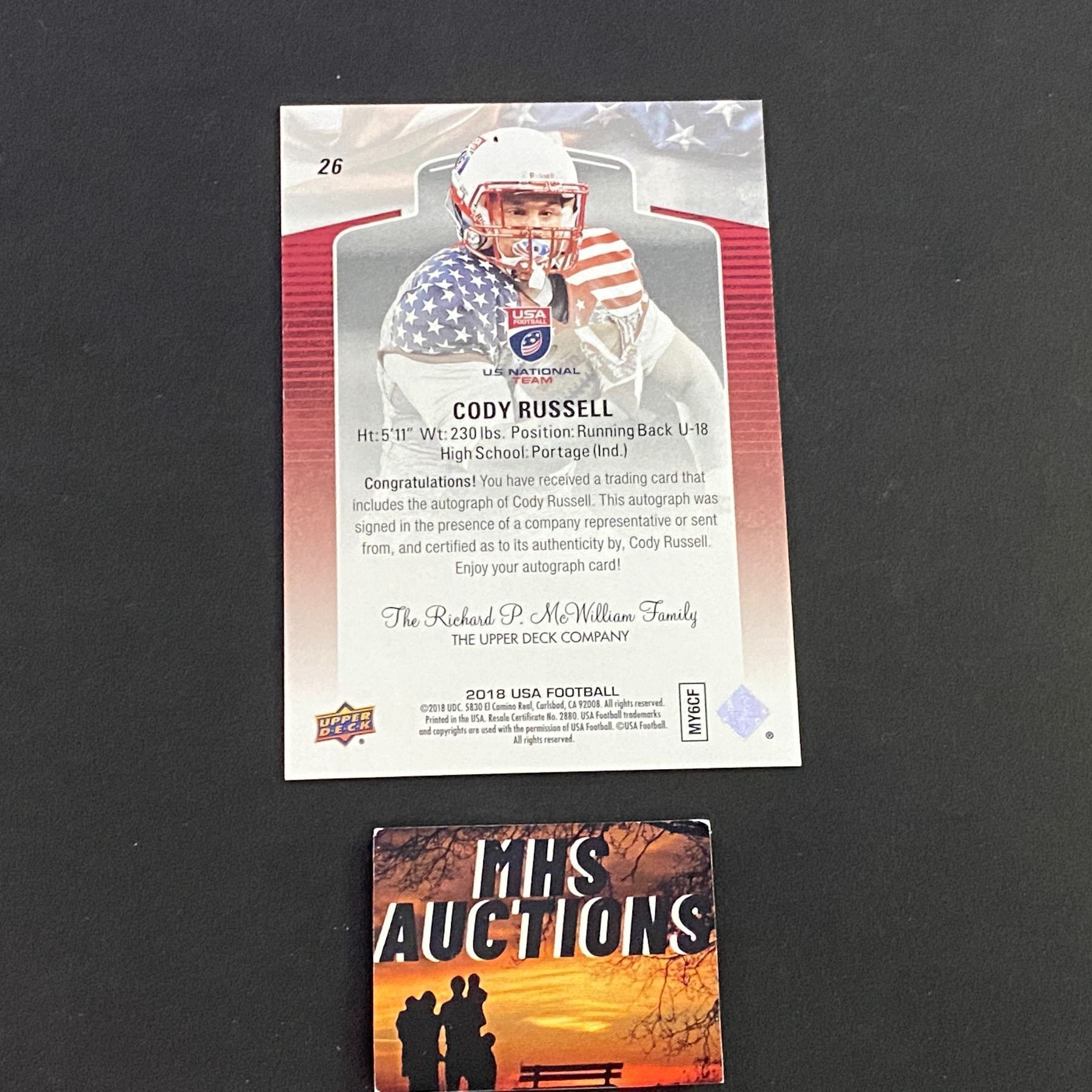 CODY RUSSELL 2018 USA FOOTBALL AUTOGRAPH CARD