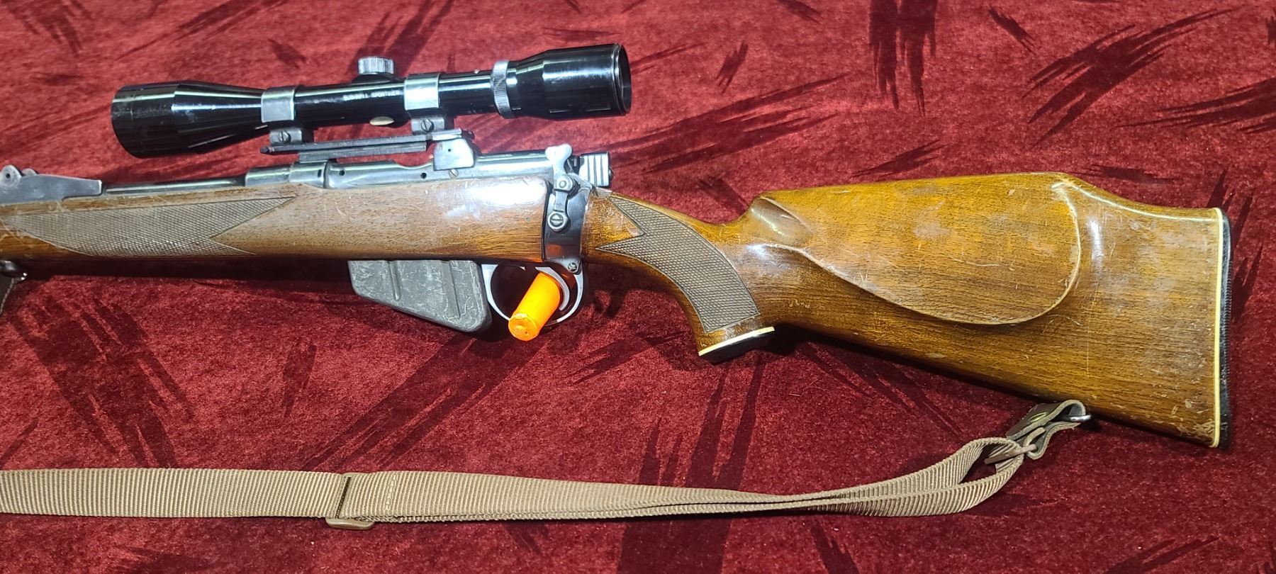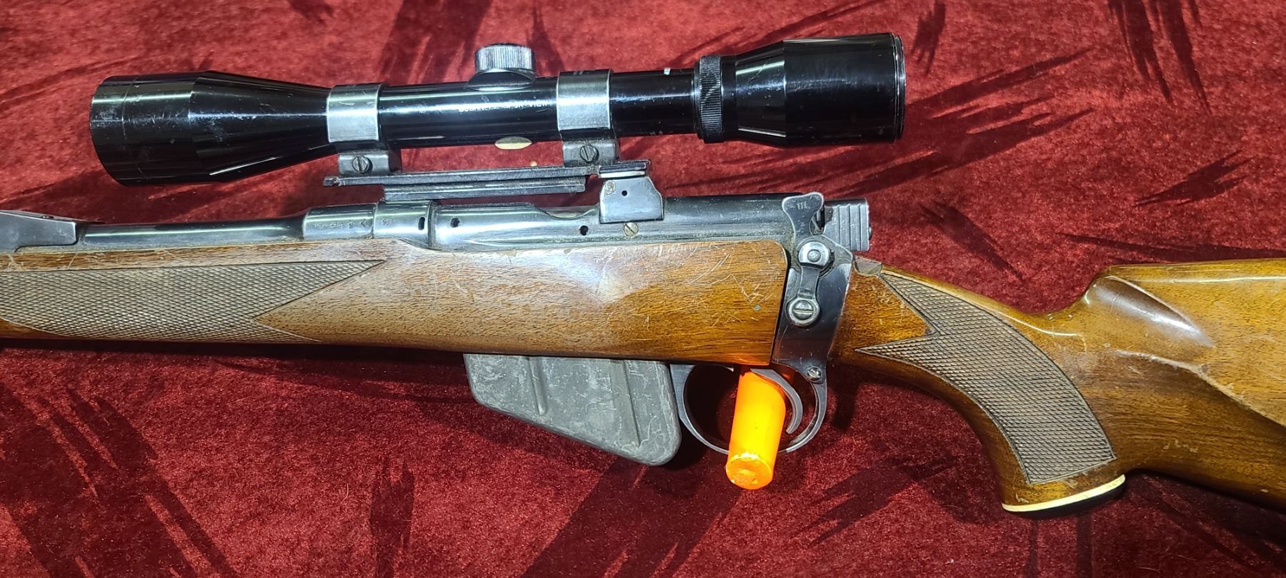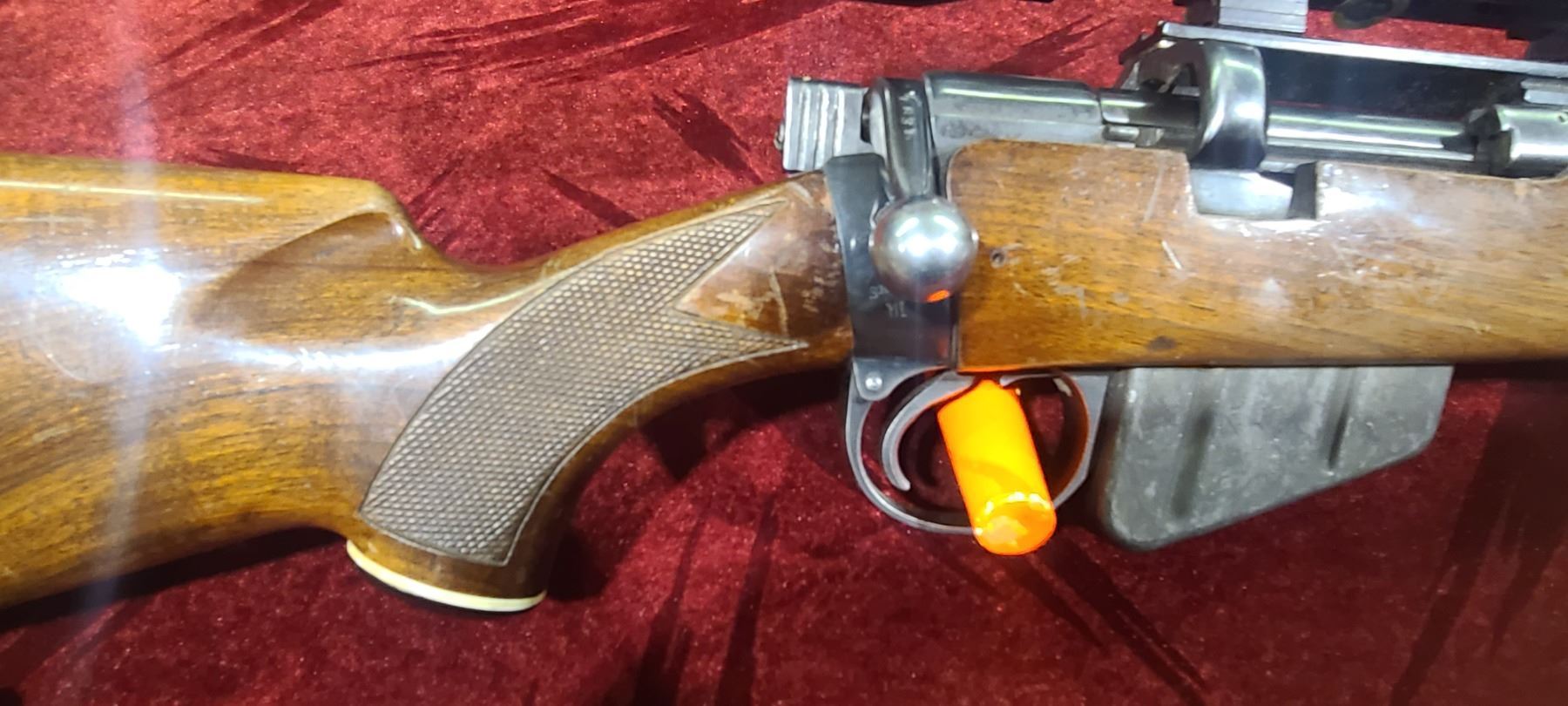 COGSWELL AND HARRISON LEE ENFIELD .303 BRITISH - 10 ROUND MAGAZINE - BUSHNELL SPORTVIEW SCOPE - MADE IN 1940 - RECIEVER # 90575 BOLT# M7573 AND 737 - 23" BARREL PLEASE SEE IMAGES FOR MORE STAMPS ON THIS .303