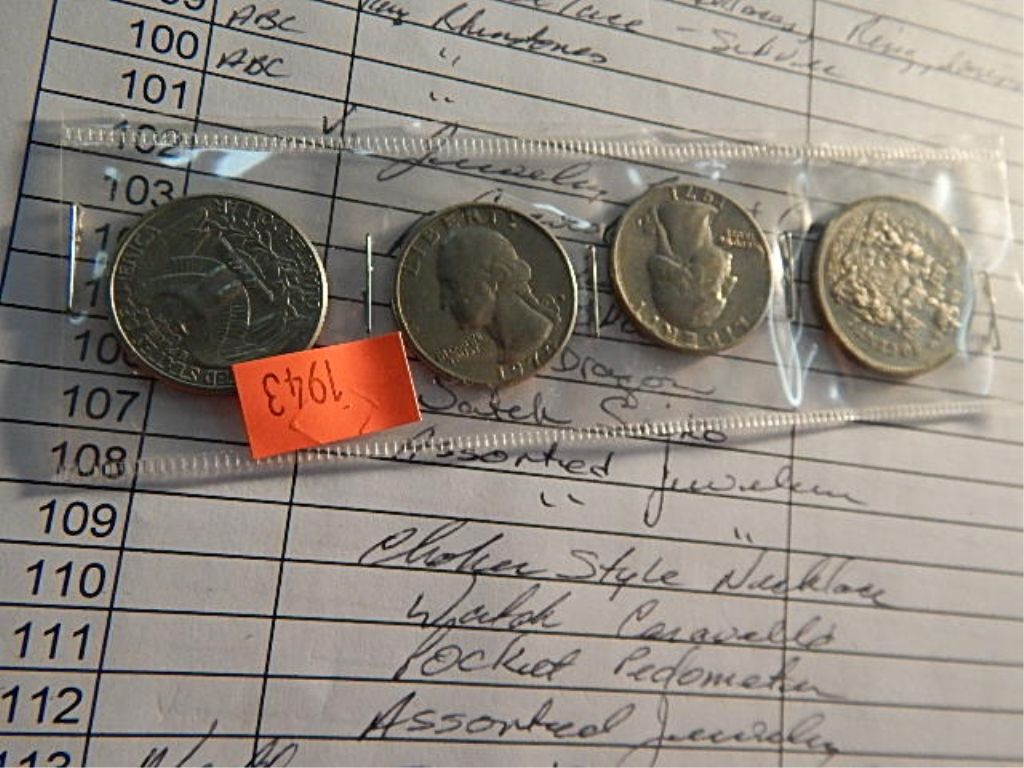 COIN - 1970'S USA QUARTERS (3) & 1969 CANADIAN 50 CENT PIECE