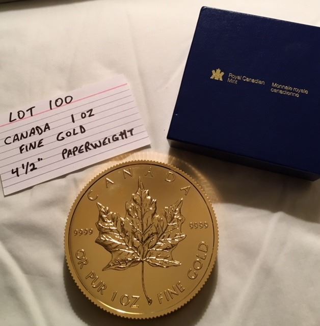 CANADA, 1 OZ FINE GOLD, 4 1/2" PAPEWEIGHT