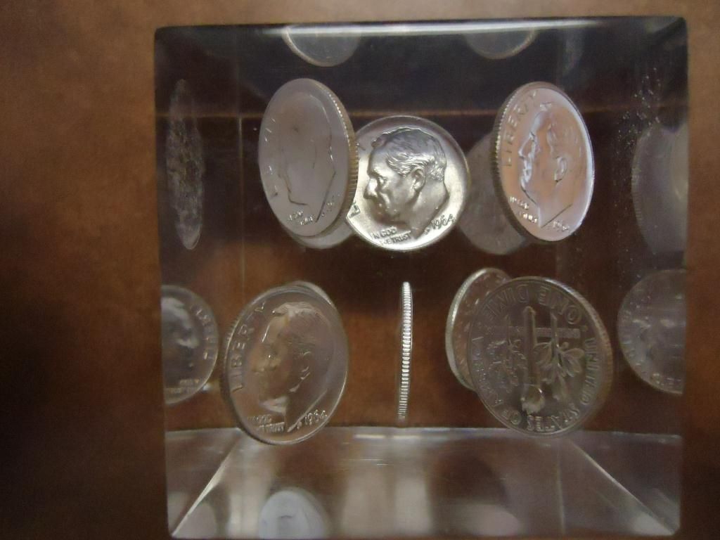 COIN CUBE WITH 10 (UNC) 1964 SILVER ROSY DIMES