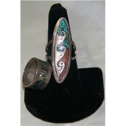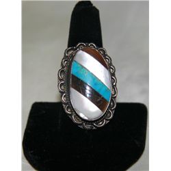 Vintage Silver Mother of Pearl & Turquoise Ring