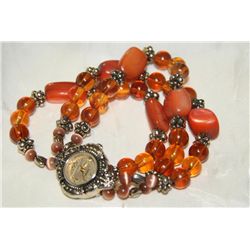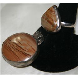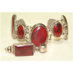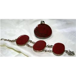 Silver Bracelet & Pendant w/ Red Jasper Stones
