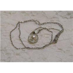14k White Gold Pearl & Diamond Necklace 4.4 Grms