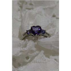14k White Gold Amethyst, Tanzanite & Diamond Ring