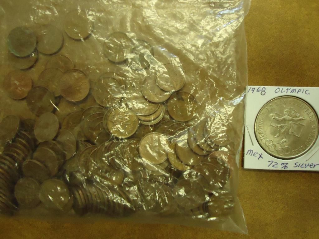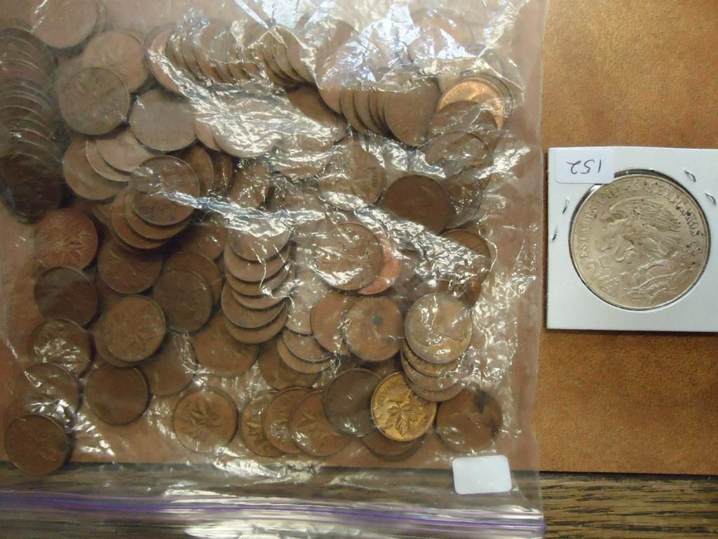 1968 MEXICAN OLYMPIC SILVER 25 PESO AND APPROX. 155-1951-1980 CANADIAN CENTS