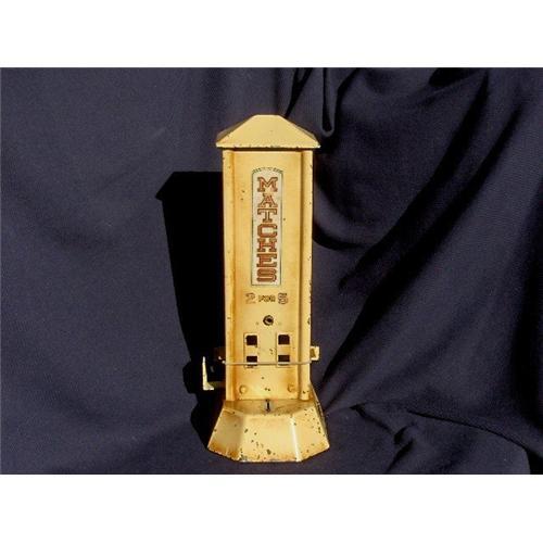 Coin Operated Northwestern Art Granite 2 for 5-Cent Box Match Vending Machine. This machine was produced in the 1920-30's. The more common verson is the 1-Cent machine. This is a rare and hard to find item. I don't know the entire history on the item, and this came to me as is. The front and back are cast iron, the sides are metal. The piece is painted, not porcelain. The lock is intact and the keys (2) are included. The slider mechanism works well, but only with a NICKEL. A penny won't work. I don't know if the decal is orginial, but it seems to have been on the machine for some time. There are various chips in the paint due to age, but the main problem is the back of the machine must have been dropped, there is a break. The photos will show it better than if I try to explain. Photo #3 show the inside of the machine. Photo #4 shows the break (I put a white outline). I know this can be repaired as the break is a clean one. Selling "AS IS". Have a look at my other items. Thank you for viewing.