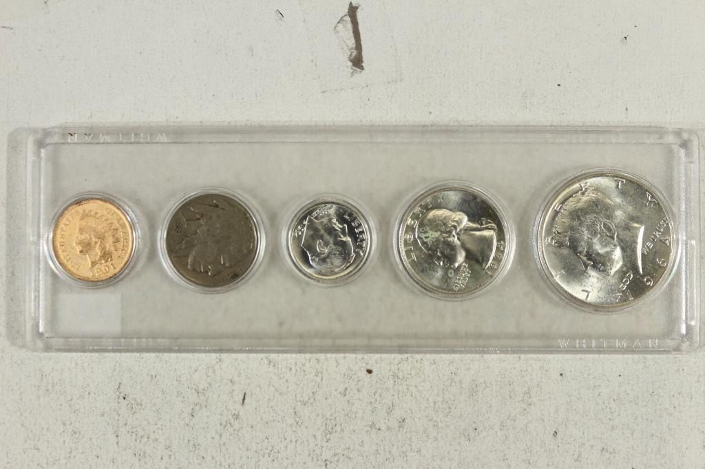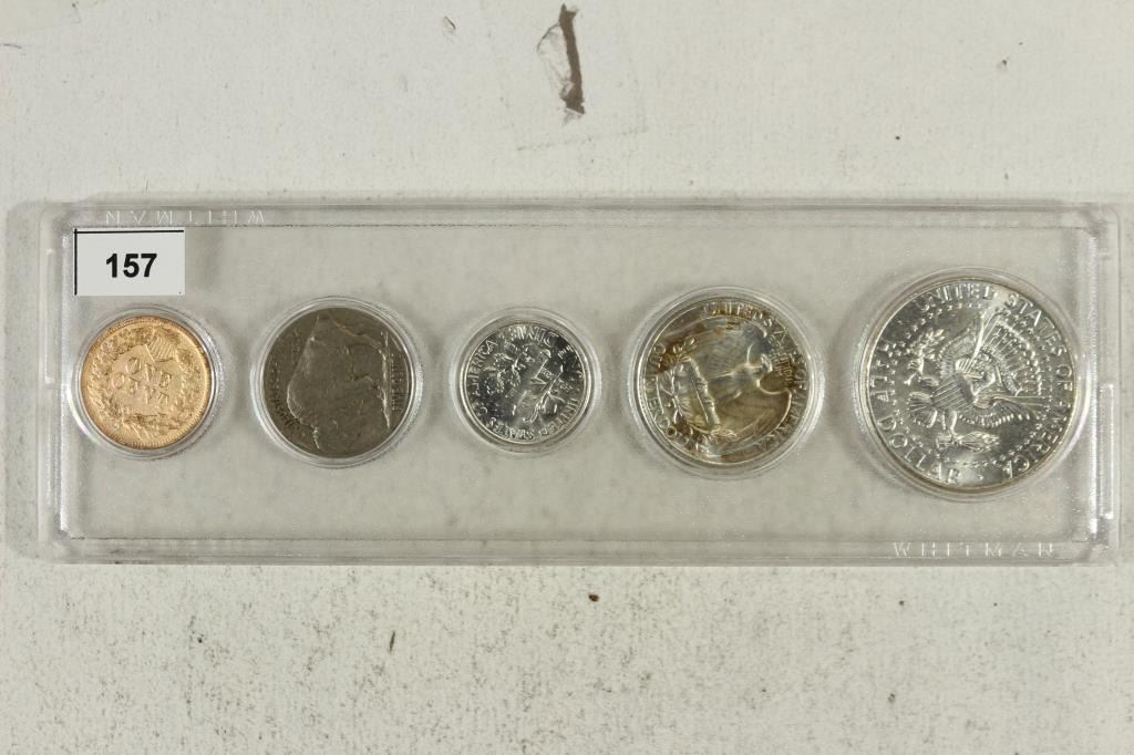 1936 BUFFALO NICKEL, 1964 SILVER ROOSEVELT DIME, 1964-D WASHINGTON SILVER QUARTER AND 1964 KENNEDY HALF DOLLAR