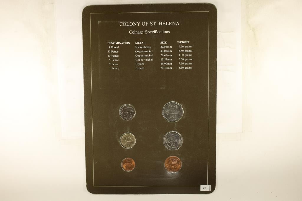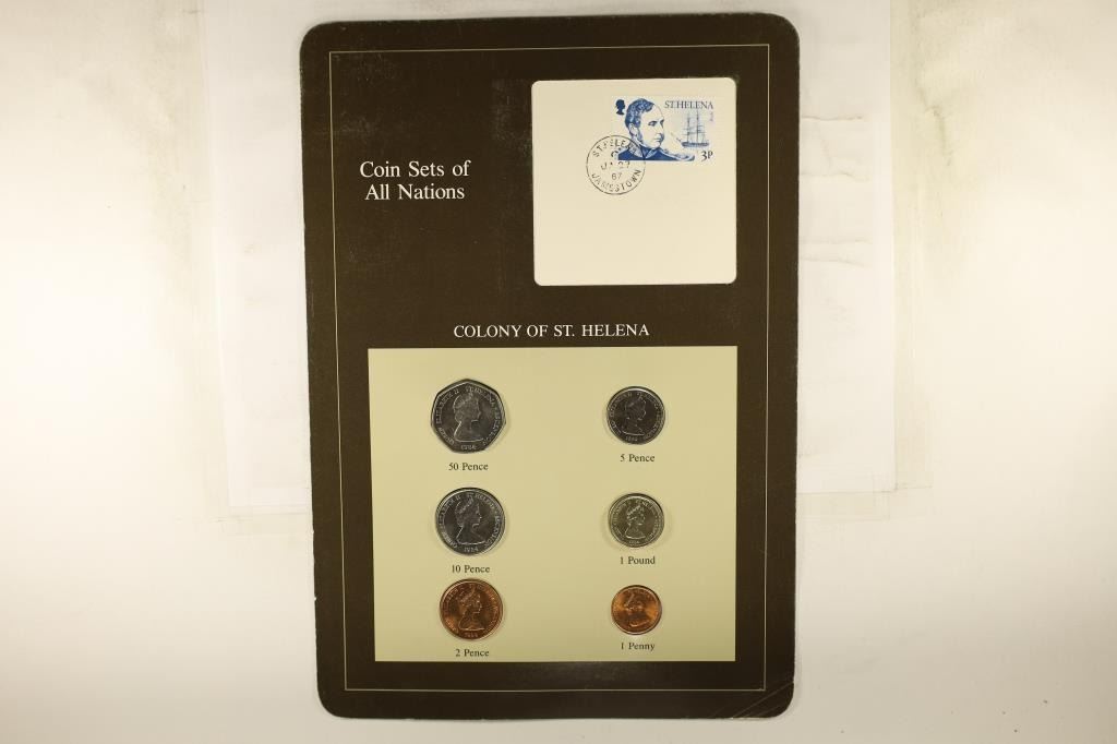 COIN UNC SET ON BROWN CARD WITH CANCELLED STAMP