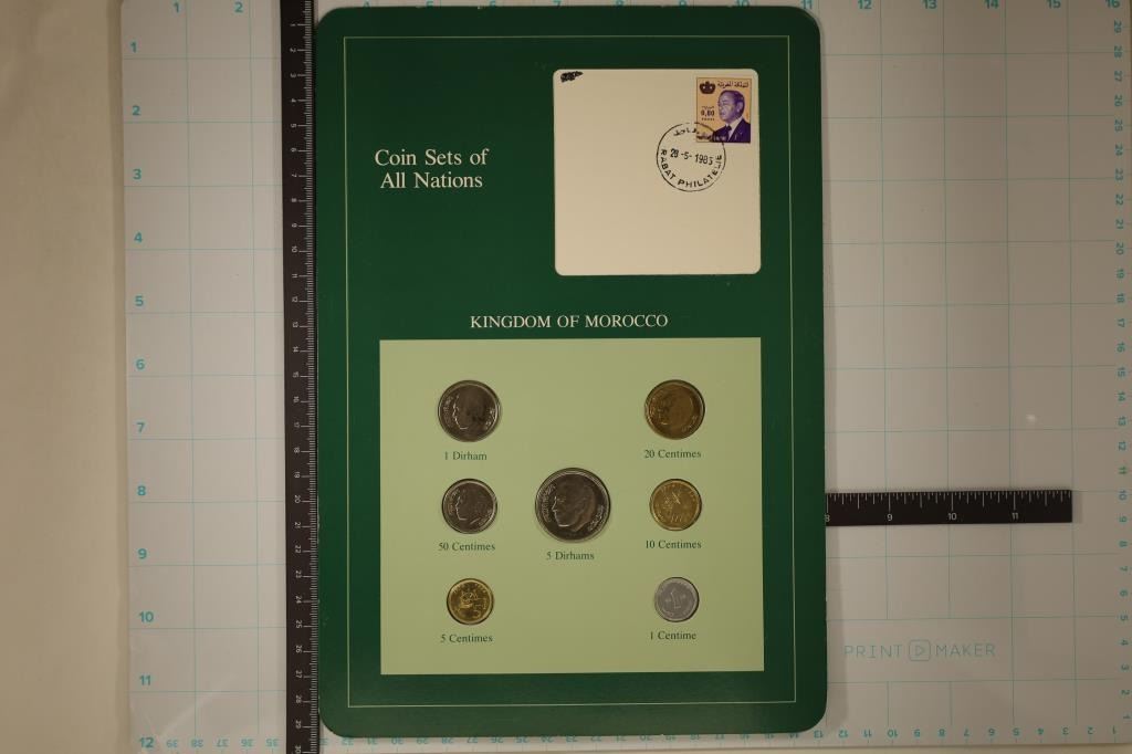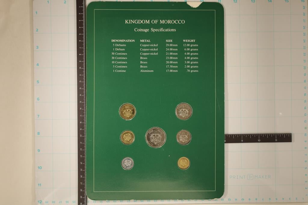 COIN BRILLIANT UNC SET ON GREEN CARDBOARD WITH CANCELLED STAMP