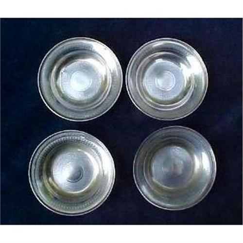 Set of four coin silver butter pats. There are two marks one Albert Cole, worked at 6 Little Green Street, N.Y. Also R. Rait for Robert Rait who worked at Ann Street who was commissioned by the City Council to design badges for the New York Police Department. Both of these silversmiths were also retailers. Great engine turning. Mono of [EST] on the back. Size 3 5/8 inches across and about 3/4 inch deep. They are quite heavy. As a foot note during their life they were imported to France as there is an importation mark on all four. Excellent condition