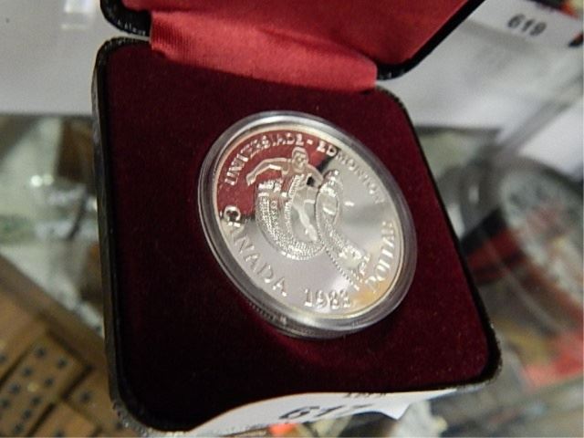 COIN - SILVER PROOF DOLLAR COIN - 1983 EDMONTON - IN PRESENTATION CASES INCLUDED AND PLASTIC CASE