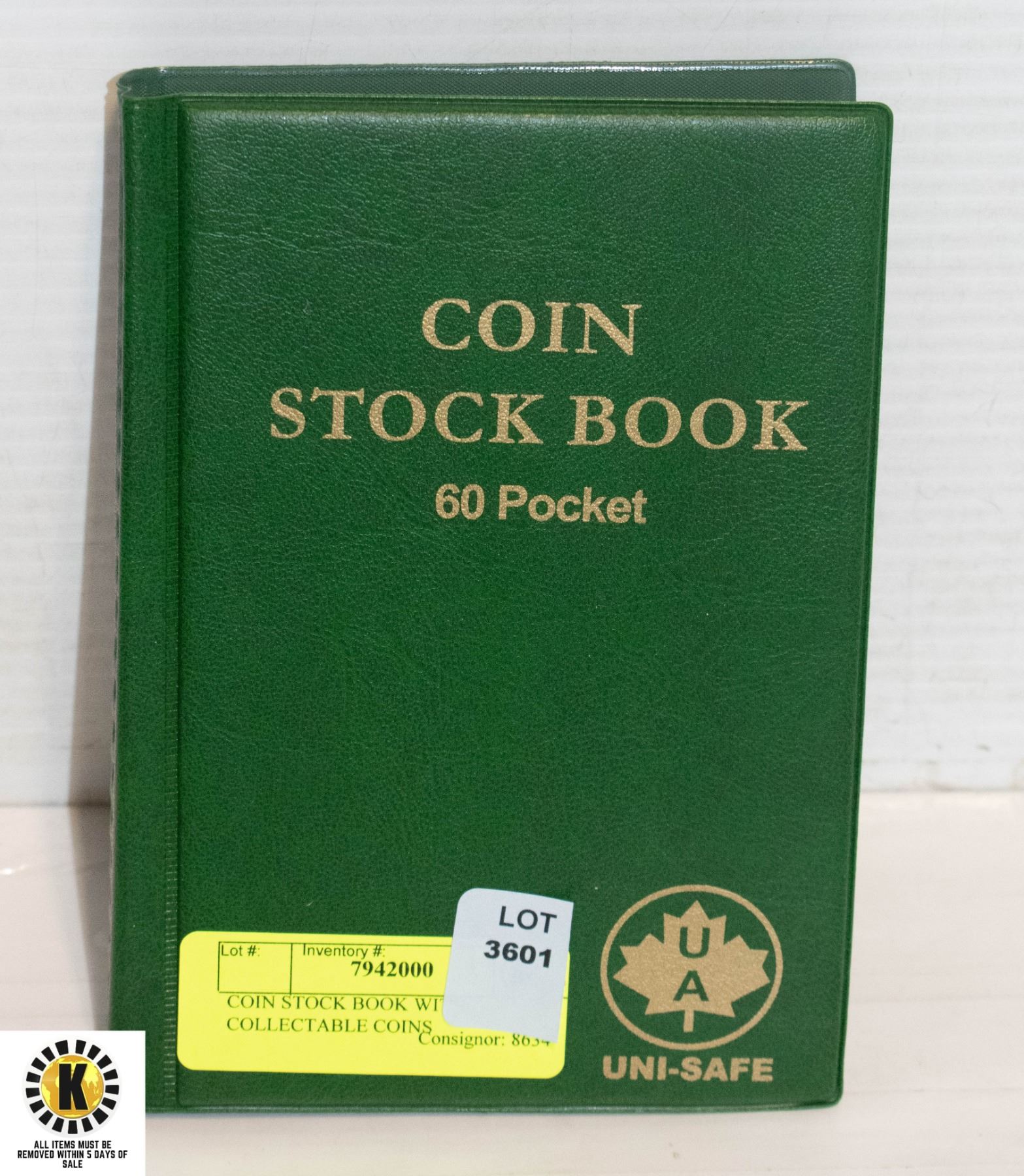 COIN STOCK BOOK WITH COLLECTABLE COINS