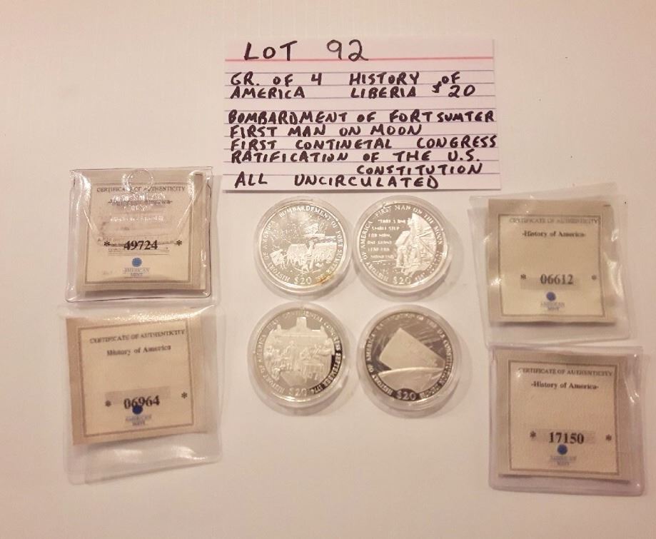 GR OF 4, US, 20 DOLLAR - LIBERIA. HISTORY OF AMERICA. UNCIRCULATED.