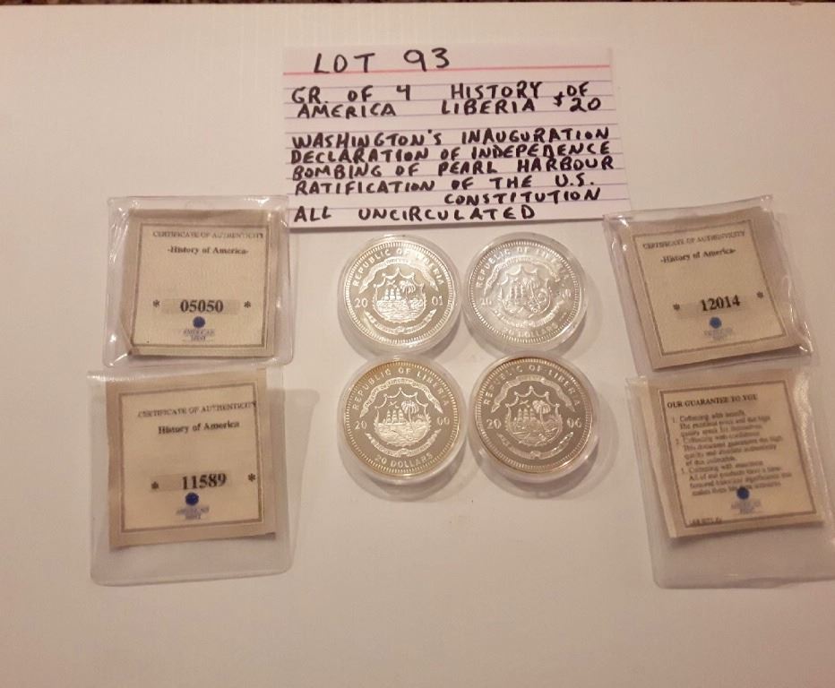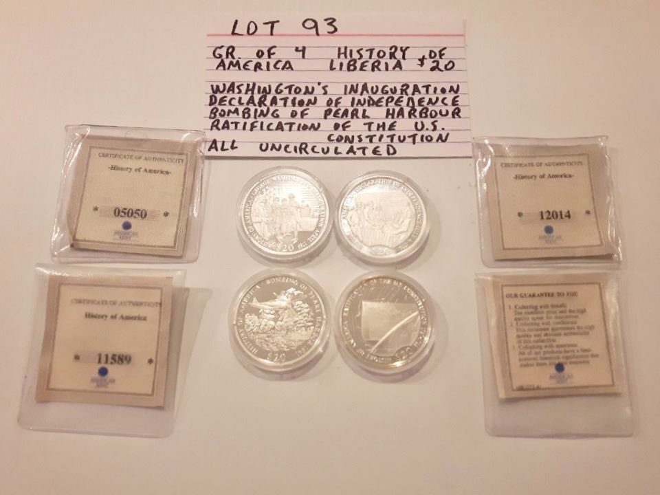 GR OF 4, US, 20 DOLLAR - LIBERIA. HISTORY OF AMERICA. UNCIRCULATED.