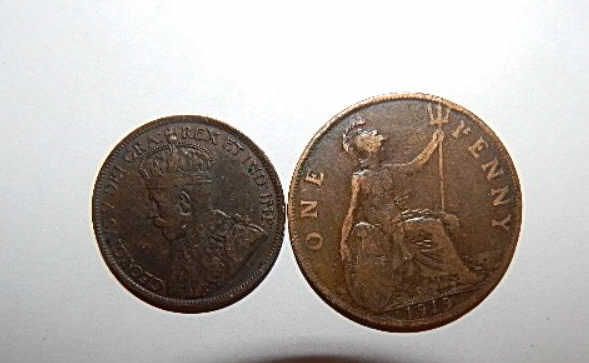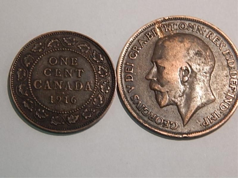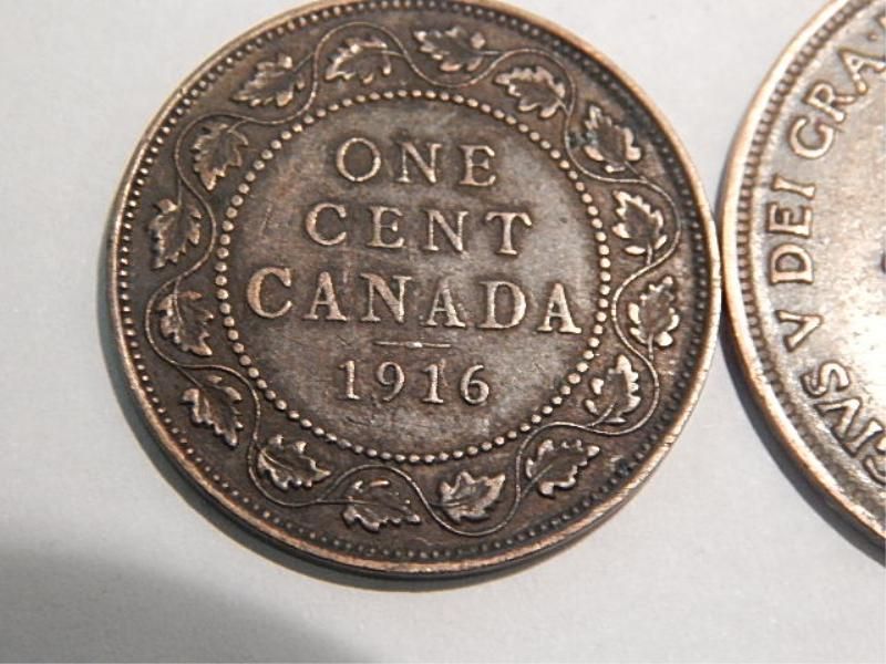 COINS - 1916 ONE CENT CANADA & 1919 ONE PENNY = 2 TOTAL