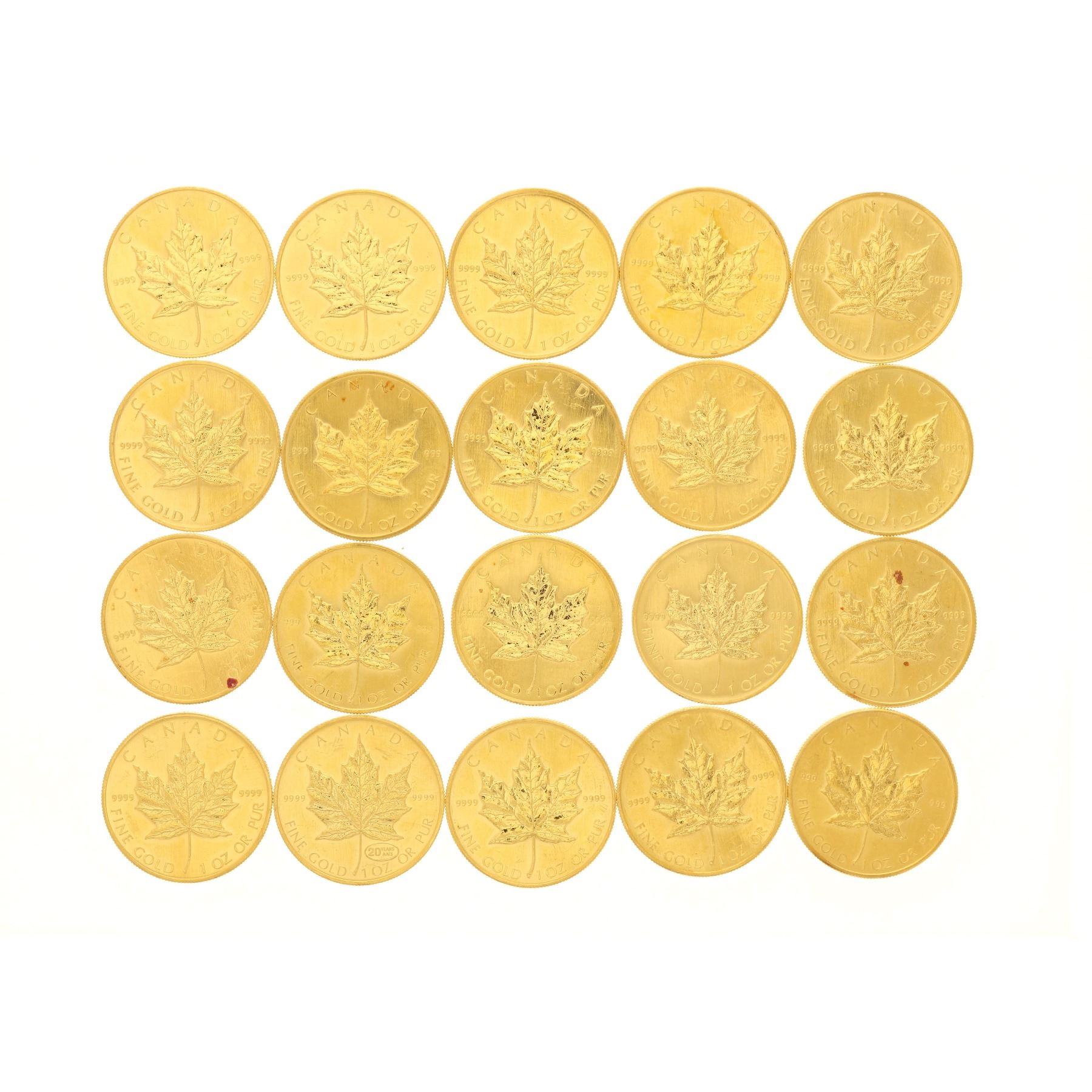 COINS: [20] Canadian Gold Maple Leaf fifty dollar 1 ounce (.999) fine gold coins; [assorted dates]