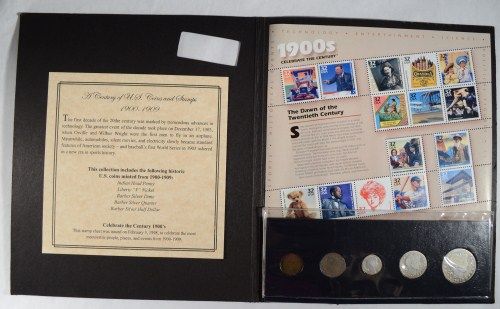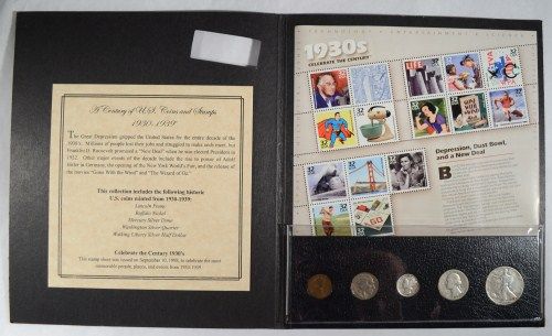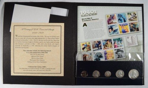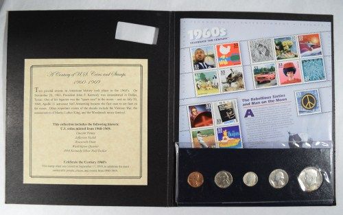 COINS AND STAMPS FROM 1900'S, 1930'S, 1940'S, 1960'S IN NICE DISPLAY FOLDERS