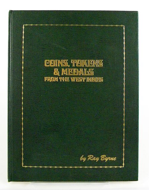 Peters, Jess. COINS AND TOKENS OF THE CARIBEES. Los Angeles, June 13-14, 1975. 4to, original green leatherette, gilt. (17), xiii, (2), 142, (2) pages; 1457 lots. Printed prices realized. Fine. The hardcover edition of the important sale of the Ray Byrne collection, the cover title of which is Coins, Tokens & Medals from the West Indies, and authorship of which is ascribed to the consignor.