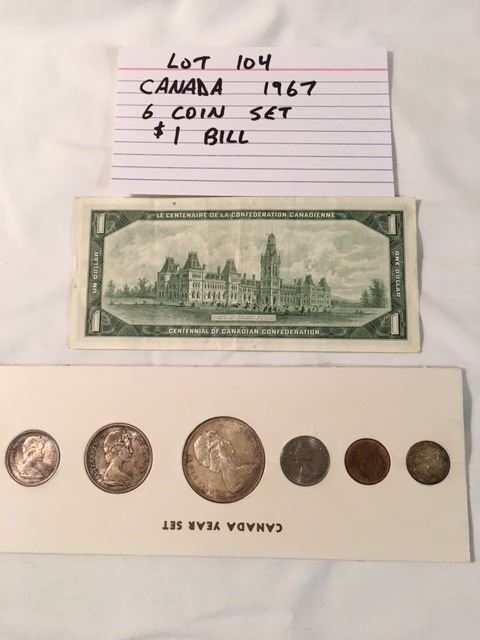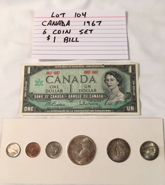 CANADA, 1967, 6 COIN SET WITH A 1 DOLLAR BILL