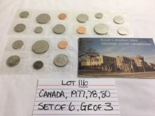 CANADA, 1977 & 1978 & 1980, SET OF 6 UNCIRCULATED COIN SETS, GR OF 3