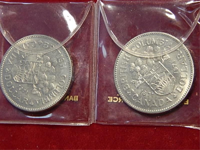 COINS - CANADIAN 1871-1971 ONE DOLLAR COINS - 2 TOTAL