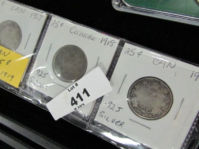 COINS- CANADIAN - 25 CENT - 1917,1918,1919 (SILVER)