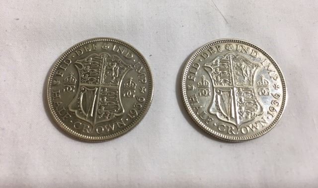 GB, 1936, GR OF 2, HALF CROWNS