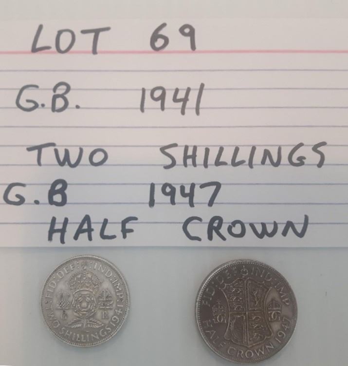GR OF 2: GB, 1941, 2 SHILLINGS. GB, 1947, HALF CROWN.