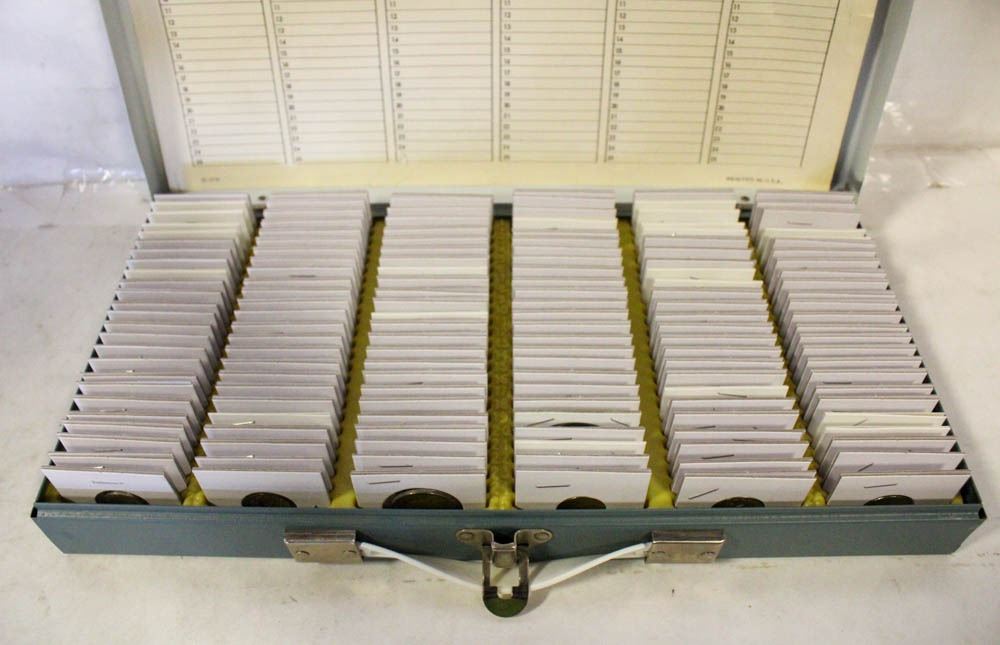 COINS IN METAL CASE SLOTTED IN 2X2'S
