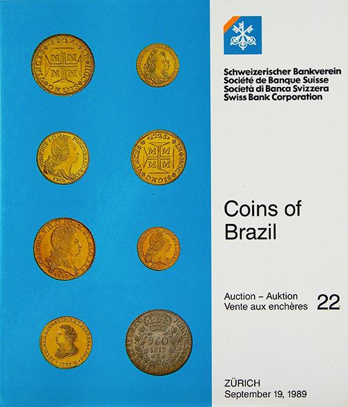 Schweizerischer Bankverein. COINS OF BRAZIL. Zürich, Sept. 19, 1989. Square 8vo, original boards. 135, (1) pages; 810 lots; illustrated throughout; color plate and map. Fine. A significant sale.