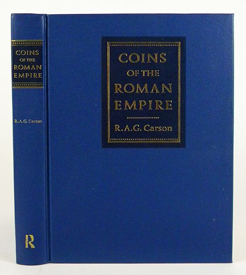 Carson, R.A.G. COINS OF THE ROMAN EMPIRE. London, 1990. Crown 4to, original blue cloth, gilt; slipcase. xiv, 367, (3) pages; 64 plates of coins. Fine. An important work.