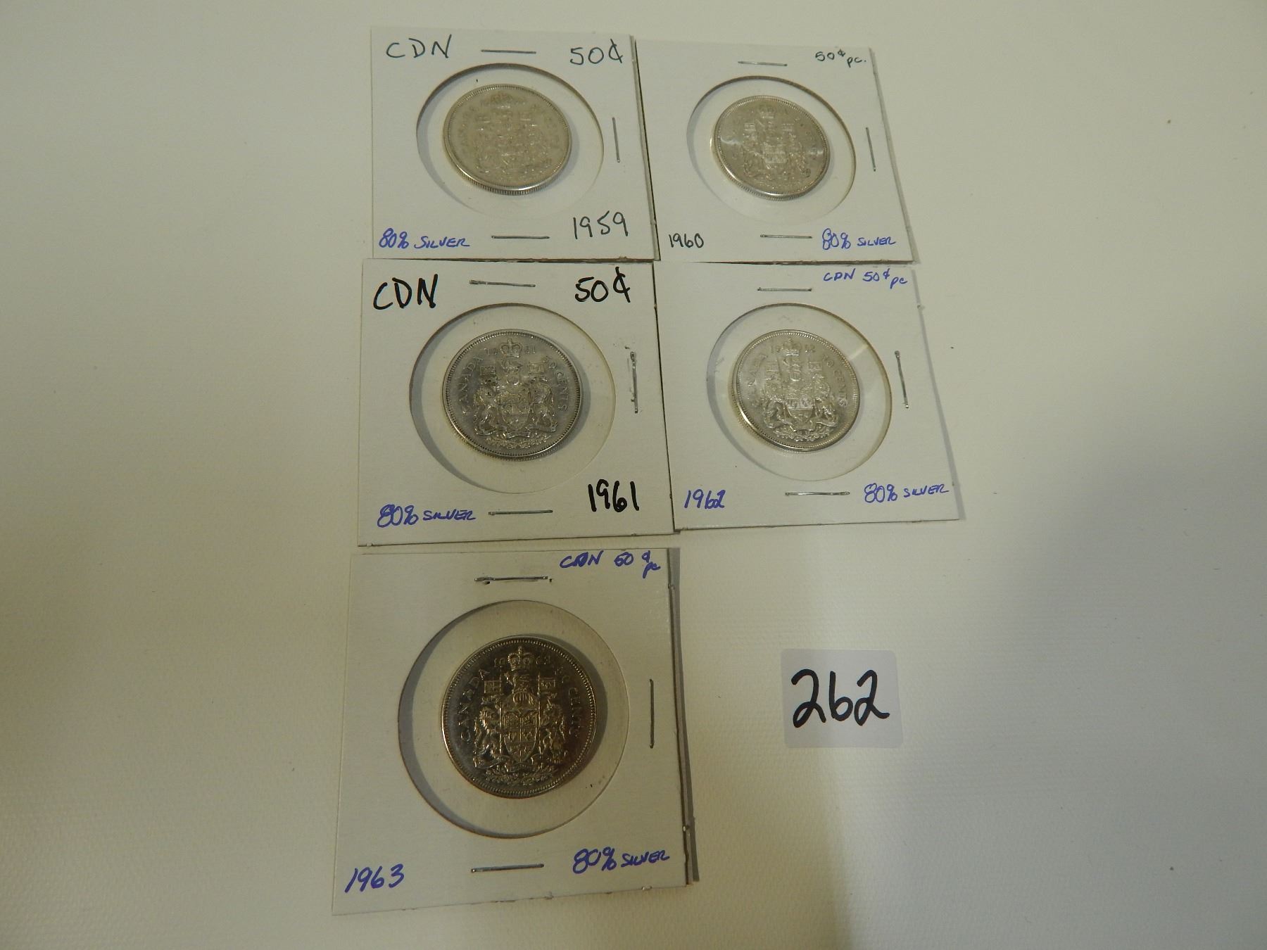 5 CANADIAN 50 CENT PC/1961-1964-1964-1966-1966