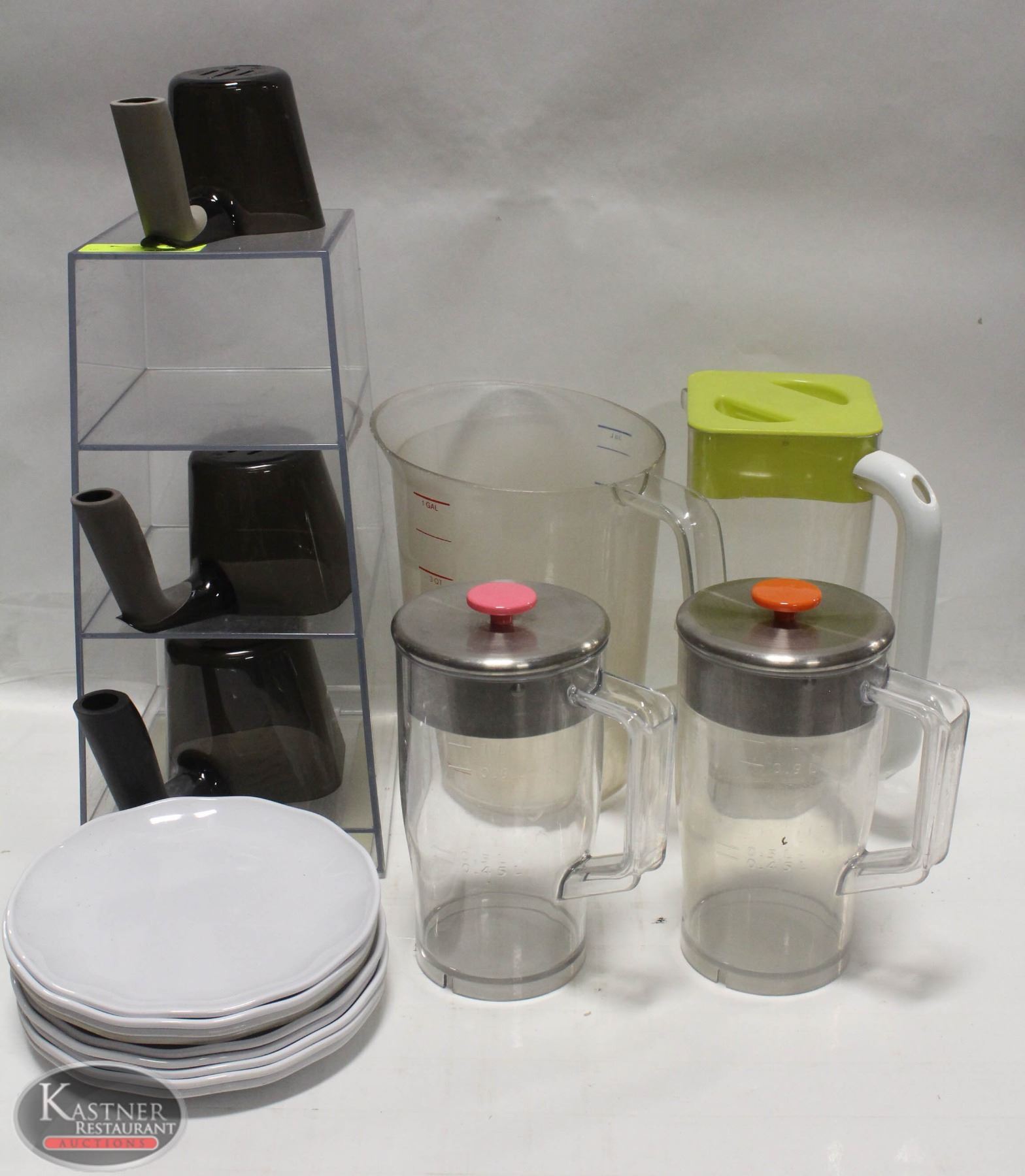 INCLUDING: TWO WOODMAX NSF APPROVED POLY PLASTIC PITCHERS W/ STEEL LIDS, 3 STEEPING MEASURES(WK028,WK029,WK030 ALL NSF APPROVED)