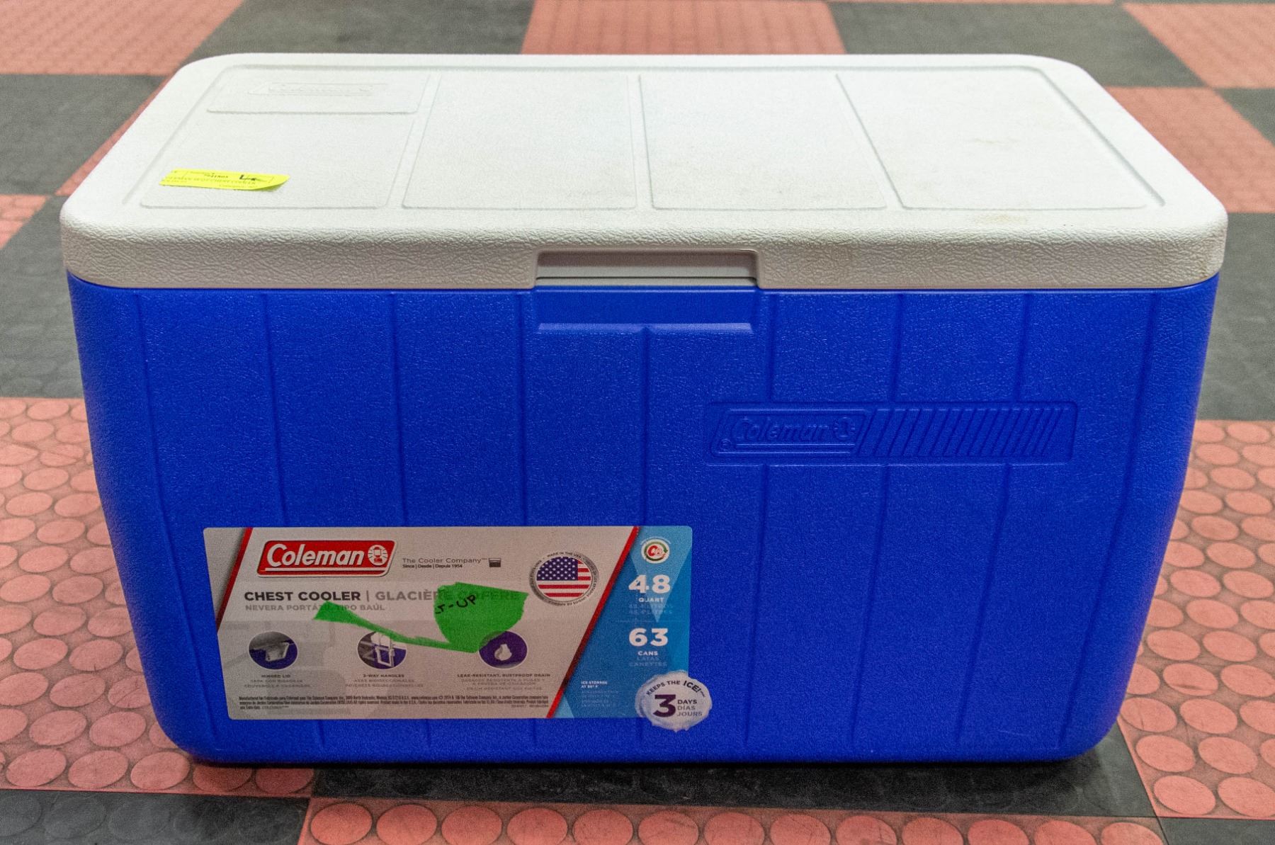 CANS, KEEPS ICE 3 DAYS, HINGED LID, DRAIN SPOUT, 2-WAY HANDLES, BLUE WITH WHITE LID **ALL ITEMS MUST BE REMOVED BY 5PM SATURDAY, MARCH 11TH 2023. ALL REMAINING ITEMS WILL BE SUBJECT TO A $6.00 PER DAY STORAGE CHARGE. ANY ITEMS REMAINING AFTER MONDAY, MARCH 27TH, 2023 WILL BE CONSIDERED FORFEITED. NO REFUNDS WILL BE ISSUED FOR FORFEITED ITEMS. TO SCHEDULE A PICK UP APPOINTMENT CLICK HERE